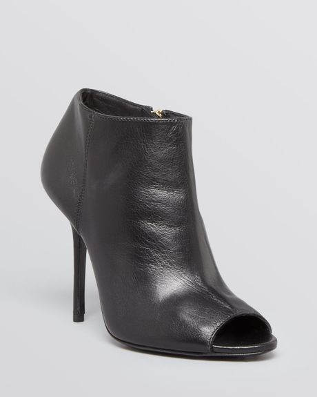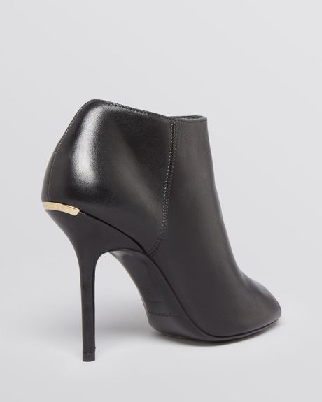 H By Halston Leather Peep-Toe Bootie With Block Heel ...